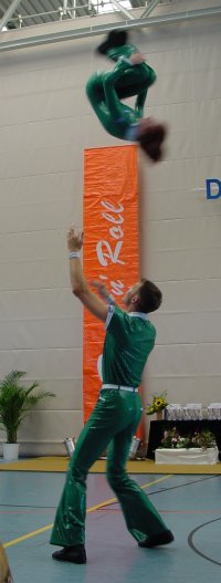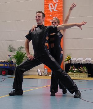Bis zur Finalrunde verlief die deutsche Meisterschaft in der A-Klasse so, wie viele es wohl auch erwartet hatten. Doch dann sorgten Patzer und Taktfehler in der Akrobatik-Endrunde dafür, dass das Turnier doch ganz anders ausging! Claudia und Christian Rüssel waren in Münster angetreten um ihren Titel zu verteidigen. Bereits in den Vorrunden wurde klar, dass sie es nicht leicht haben würden. Aber kaum jemand in der Halle hatte wohl damit gerechnet, dass es für die beiden Tänzer vom RRC Speyer am Ende nicht einmal für einen Platz auf dem Siegertreppchen reichen würde! Ein Taktfehler im Finale, und aus war der Traum vom Titelerhalt. Auch wenn die Wertungsrichter offensichtlich unterschiedlicher Auffassung waren, wie dieser Fehler zu bewerten war (siehe Ergebnisse), ergab sich am Ende der vierte Platz für Claudia und Christian. |