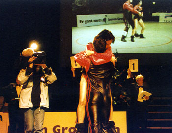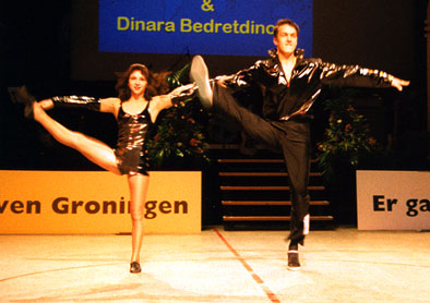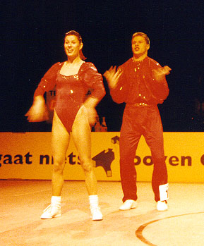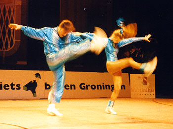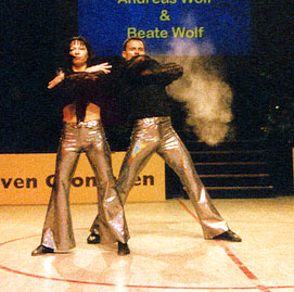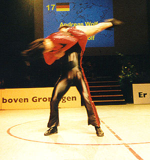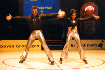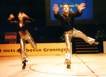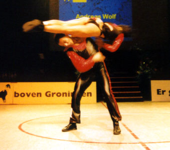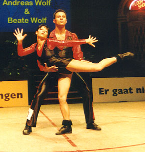 Training twice a dayFor half a year the Wolfs were preparing themself for this World- Championship. Twice a day they did training, dancing-technique in the morning, and fitness, strength and acrobatics in the afternoon. "We are very happy. Thanks to everyone who helped us in reaching this aim!" Beate Wolf said immediately after the jury had presented their results - and she had tears in her eyes. Beate and Andreas Wolf are a very sympathic couple, and they got ovations not only from the many german fans who came to Groningen, but from the complete audiance. |